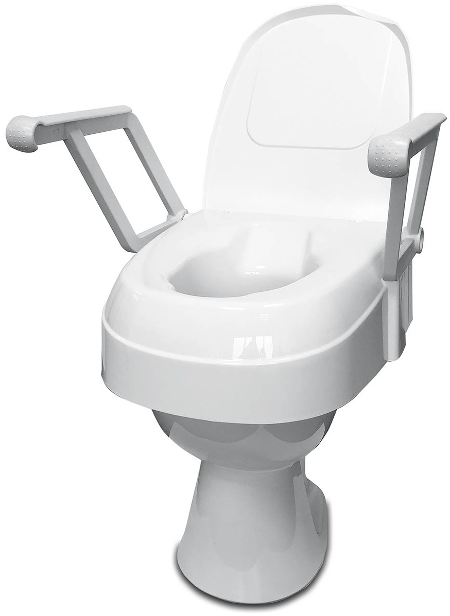 Mit der Toilettensitzerhöhung TSE 120 Plus bewahren Sie sich Ihre Selbstständigkeit beim Gang aufs stille Örtchen. Die innovative Topmontage gelingt einfach und schnell ganz ohne Werkzeug. Die dreifache Höhenverstellung erleichtert das Hinsetzen und Aufstehen. Mit den hochklappbaren Armlehnen haben Sie jederzeit sicheren Halt. Toilettensitzerhöhung für Sicherheit und Komfort im Bad Die perfekte Toilettenhilfe für alle, die Unterstützung beim Hinsetzen und Aufstehen benötigen. Die Sitzerhöhung ist mit wenigen Handgriffen auf jede handelsübliche Toilette aufgeschraubt. Dreifach höhenverstellbar (8,5 / 12 / 15,5 cm), passt sie sich optimal Ihren Bedürfnissen an. Die integrierte Brille besitzt zwei Hygieneaussparungen für die Intimhygiene. Die Griffmulde am Deckel erleichtert das Öffnen. Rutschsichere Armlehnen bieten Ihnen sicheren Halt und erhöhen den Komfort. Die Toilettensitzerhöhung nimmt nur wenig Platz ein und ist dank glatter Oberflächen leicht zu reinigen. Die Qualitätsmerkmale im Überblick: * Innovative Befestigung von oben für eine einfache Montage * Integrierte Brille mit zwei Hygieneaussparungen * Griffmulde am Deckel erleichtert das Öffnen * Hochklappbare und rutschsichere Armlehnen * Dreifache Höhenverstellung * Glatte Oberflächen erleichtern die Reinigung * Inklusive Montagehandschuhen * Lieferung in praktischer Mitnahmeverpackung * Höhenverstellung 8,5 / 12 / 15,5 cm * Gesamtlänge: 49 cm * Gesamthöhe: 38 cm * Öffnung: B 20,5 × L 27 cm * Sitzfläche zwischen den Armlehnen: 46 cm * Hilfsmittelnummer: 33. 40. 01. 3033
