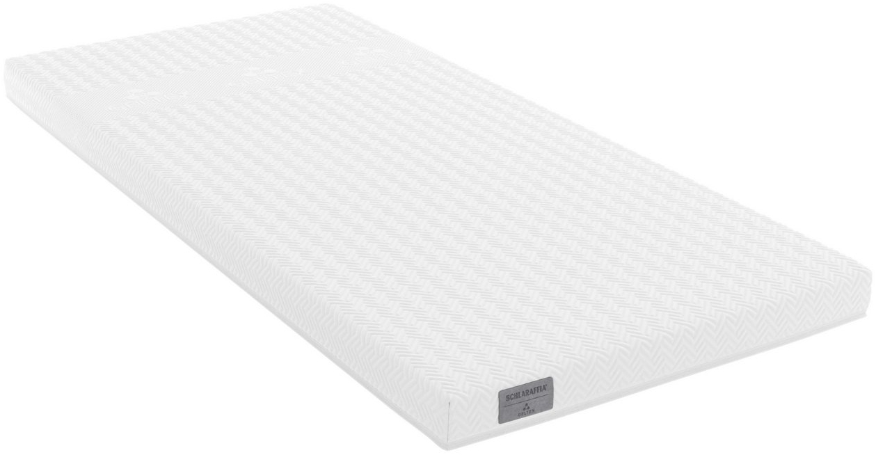 Der Topper SCHLARAFFIA GELTEX QUANTUM NEXT überzeugt durch seine herausragende Anpassungsfähigkeit und den hochwertigen GELTEX®-Schaum, der für optimalen Komfort sorgt. Mit einer Matratzenhöhe von 10 cm und einer Kernhöhe von 8 cm passt er sich flexibel an Ihre Körperkontur an und bietet ein unvergleichliches Schlafgefühl. Der Bezug aus 100% Polyester ist bis 60 Grad waschbar und garantiert eine einfache Pflege. **Highlights** - GELTEX®-Schaum für optimale Anpassungsfähigkeit - Matratzenhöhe von 10 cm für zusätzlichen Komfort - Kernhöhe von 8 cm für perfekte Unterstützung - Bezug bis 60 Grad waschbar für einfache Pflege - Ökotex - Standard 100 für schadstoffgeprüfte Qualität **Produkteigenschaften** - Bezugsmaterial: 100% Polyester - Nicht trocknergeeignet - Nicht bleichen - Glatte GELTEX® Touch-Auflage für extra Druckentlastung