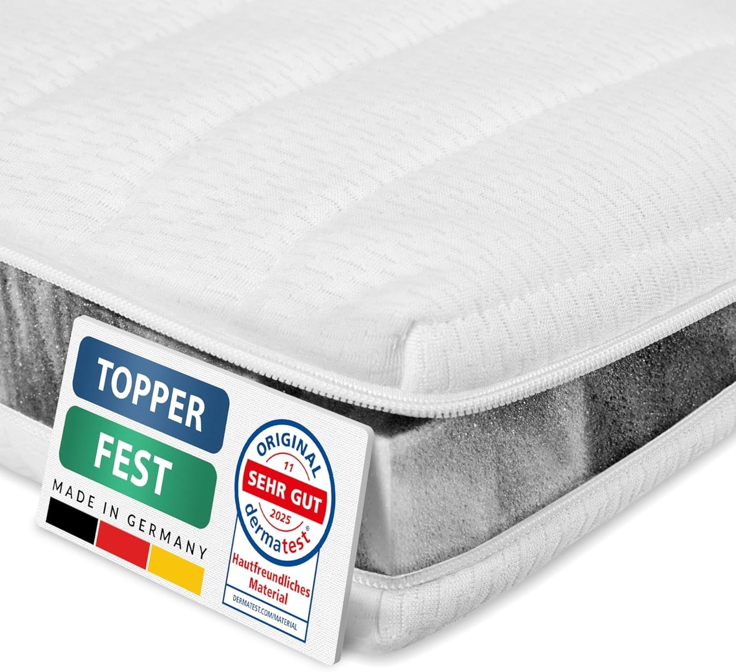 | Name | AM Qualitätsmatratzen, Topper Komfortschaum in weich & fest, Bezug waschbar, Verfügbar in H2 & H4, 6 cm hoch, Komfortschaum, 80x200 cm |