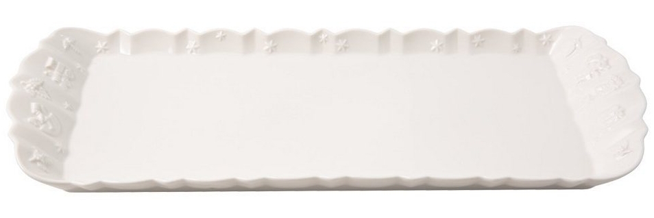Die Villeroy und Boch Toy's Delight Royal Classic Königskuchenplatte aus Premium Porzellan ist perfekt für die festliche Weihnachtszeit. Mit einem geschwungenen roten Rand und einem Reliefmuster mit Weihnachtsmotiven setzt sie Gebäck gekonnt in Szene. Das hochwertige Porzellan ist langlebig und spülmaschinen- sowie mikrowellensicher. **Highlights** - Dekorative Königskuchenplatte für süßes Gebäck - Formschönes Design mit rotem Rand - Stimmungsvolles Reliefmuster mit Weihnachtsmotiven - Hochwertiges und langlebiges Premium Porzellan - Spülmaschinen- und mikrowellensicher **Produkteigenschaften** - Maße: 40x16 cm - Farbe: Weiß - Reliefmuster mit Weihnachtsmotiven - Spülmaschinen- und mikrowellensicher - Gewicht: 0.82 kg **Lieferumfang** - 1x Villeroy & Boch Toy's Delight Königskuchenplatte, Maße: 39x16 cm, Gewicht: 0.82 kg (Art.-Nr. 14-8585-2220)