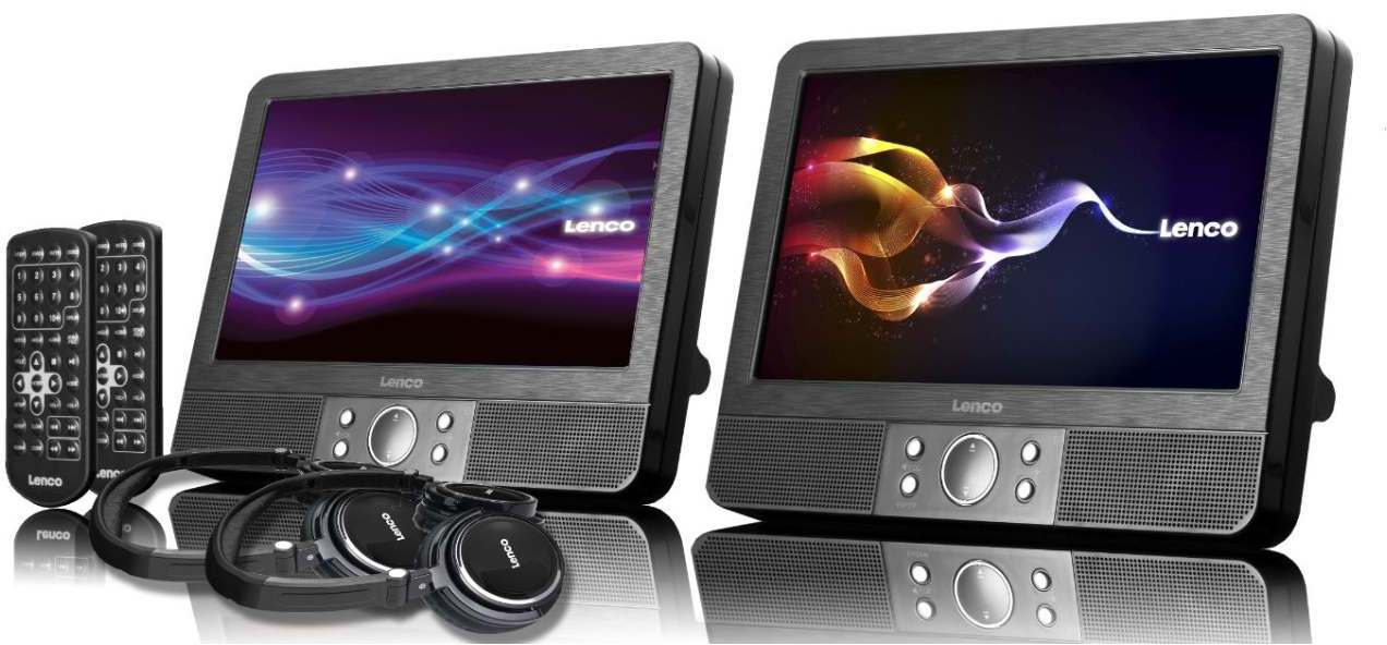 Lenco Tragbarer DVD-Player DVP-938 Doppel DVD-Player Set - 2 x 9 Zoll Bildschirm minimal 3,5 Stunden Akkulaufzeit - 2 Kopfhörer - 2 Fernbedienungen - 2 Befestigungen - Schwarz