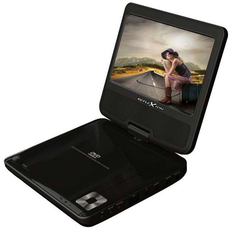 - Der Reflexion DVD7002 ist ein tragbarer DVD-Player in der Farbe schwarz.