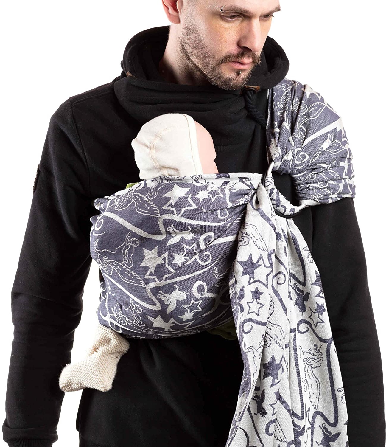 Für eine kuschelige Tragezeit - mit dem Ring Sling von SCHMUSEWOLKE Der Ring Sling vereint den Komfort eines Tragetuchs mit der Einfachheit einer Tragehilfe Wir begleiten euch vom Anfang bis zum Ende eurer ganz persönlichen Tragezeit und sogar noch darüber hinaus. Der Stoff, aus dem der Ring Sling hergestellt ist, ermöglicht euch spürbaren Komfort. Und der Ring Sling ist mehr als nur ein Stück Stoff oder eine Babytrage - es hilft dir, dein Baby weiterhin ganz nah am Herzen zu tragen mit einem vertrauten Geborgenheitsgefühl. Tragen spendet Trost und bietet gleichzeitig Schutz vor Reizüberflutung. Unsere gerafften Ring Slings sind in zwei verschiedenen Breiten verfügbar - so kannst du in Abhängigkeit vom Alter, Größe und Gewicht, das für dein Baby passende Produkt wählen. Eine Breite von 70cm ist besonders für Neugeborene geeignet und vermeidet unnötigen Stoff. Bei größeren Kindern und Toddlern empfehlen wir eine Breite von 80cm. Auf einen Blick: • Stoff aus 100% BIO-Baumwolle kb A • 2 Aluminiumringe zum sicheren und schnellen Festziehen • Jacquard-Webung mit einem Flächengewicht von 226 g/m2 • Breite 70cm oder 80cm • Ab der Geburt bis 16 kg Der Stoff Damit es schmusig bleibt! Der Ring Sling ist bereits einmal komplett vorgewaschen und fertig konfektioniert. Mit jedem Waschvorgang wird dein Ring Sling weicher und kuscheliger. Lieferumfang • SCHMUSEWOLKE Ring Sling (inkl. 2 Aluminium-Ringe) • Aufbewahrungstasche • Anleitung und Pflegehinweise Textilkennzeichnung • 100% Baumwolle (BIO kb A)