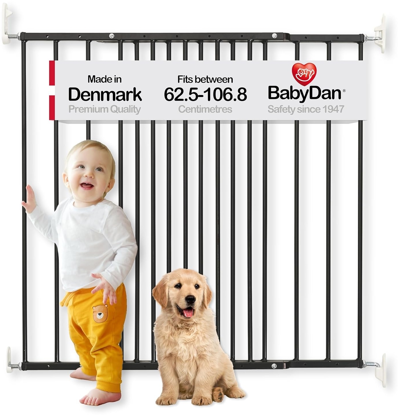 - Das Baby Dan Multidan Metall Tür und Treppenschutzgitter hat eine verstellbare Breite von 62,5 bis 106,8 cm.