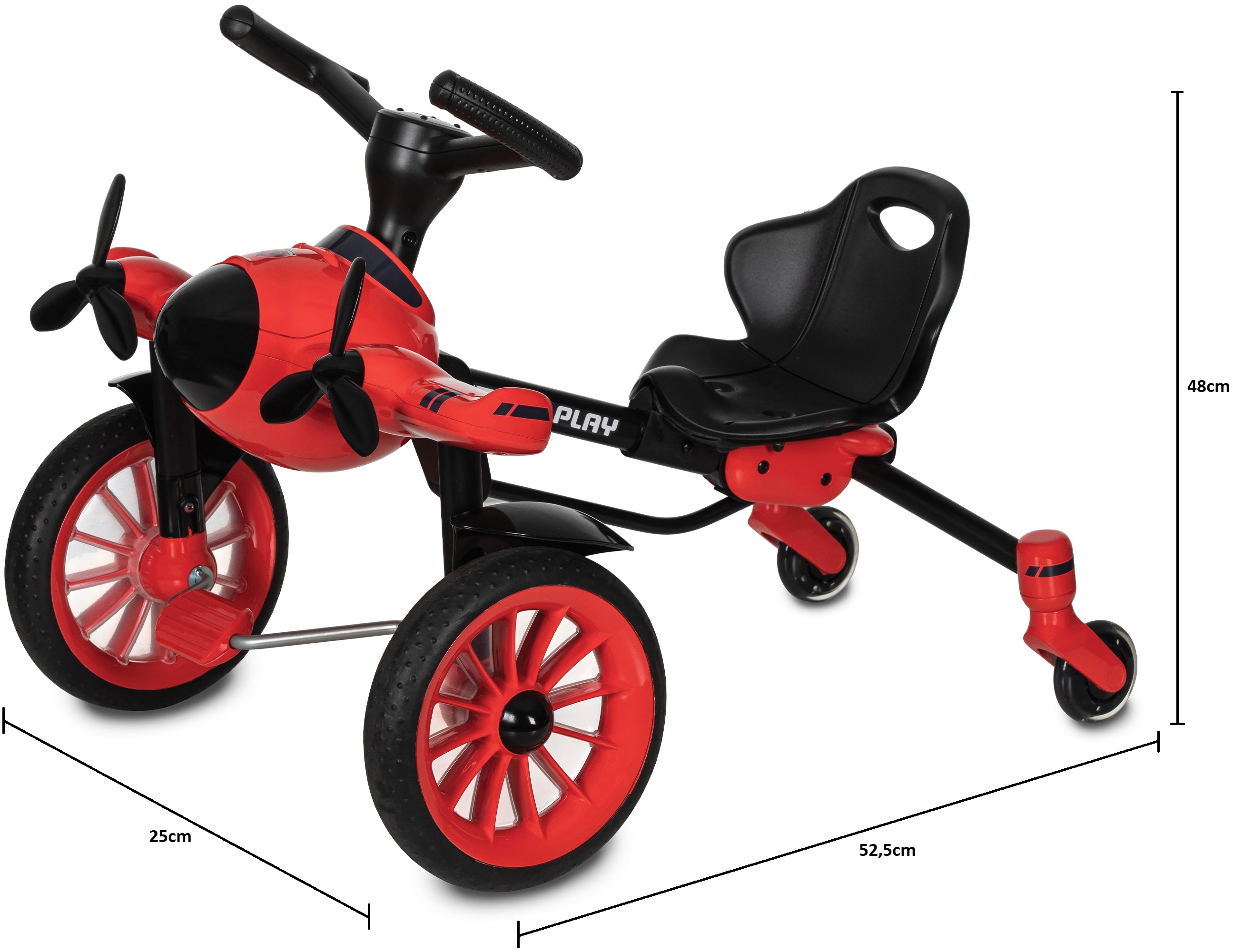 - Das Fahrzeug hat ein innovatives Flugzeugdesign, das die Fantasie der Kinder anregt