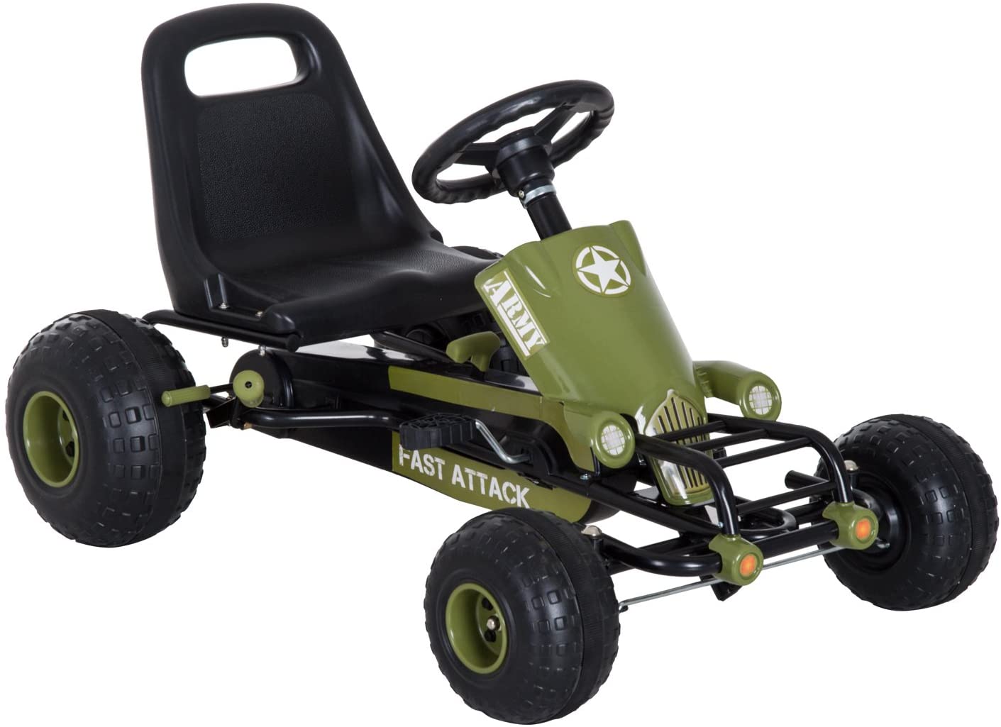 - Das HOMCOM Kinder Tretauto verfügt über ein taffes Armee-Design, das Kinder zum Spielen im Freien anregt.