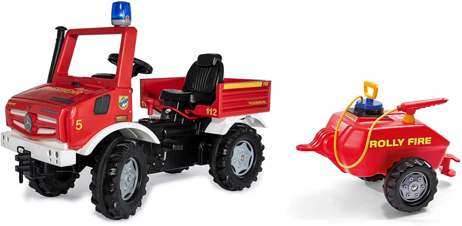 in TretautosRolly Toys Fire Unimog Feuerwehr Edition 2020 mit AnhängerTretauto, 3 – 8 Jahre, Spritze, Blinklicht, Schaltung, Bremse, Rot, 038275