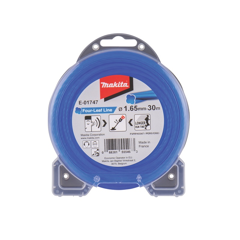- Der Makita Mähfaden Four-Leaf hat einen Durchmesser von 1,65 mm und eine Länge von 30 m.