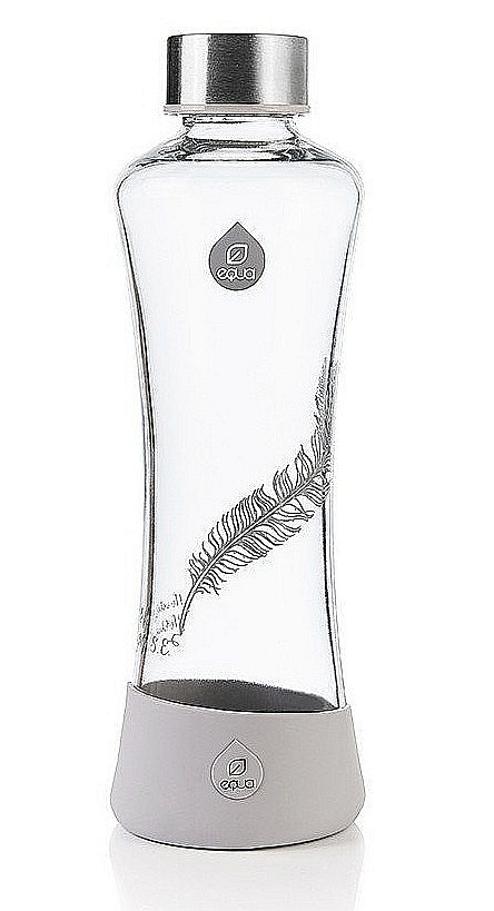 EQUA Glasflasche Feather 0,55l - Trinkflasche aus Borosilikatglas 550 ml - Designer Flasche für unterwegs - Sportflasche