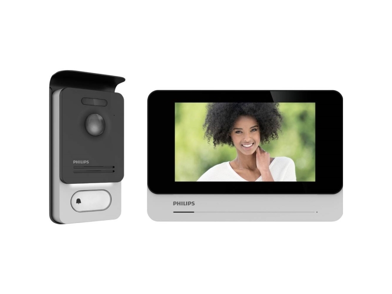 - Die Philips WelcomeEye Connect 2 verfügt über einen 7 Zoll (18 cm) Farb-Touchscreen mit einer Auflösung von 800 x 480 px.