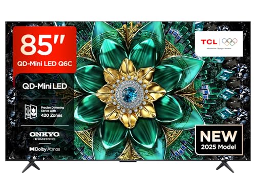 TCL 85Q6C 85 Zoll QD-Mini LED Fernseher4K HDR Premium 1000nits, Smart TV mit Google TV (Dolby Vision IQ & Atmos, Onkyo 2.1 Soundsystem, 144Hz Motion Clarity Pro, Game Master)