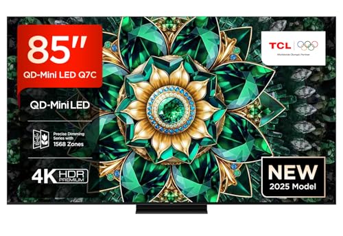 TCL 85Q7C 85 Zoll QD-Mini LED Fernseher4K HDR Premium 3000, Smart Google TV, Dolby Vision IQ & Atmos, HVA Panel, Audio von Bang & Olufsen, 144Hz Motion Clarity Pro, Game Master