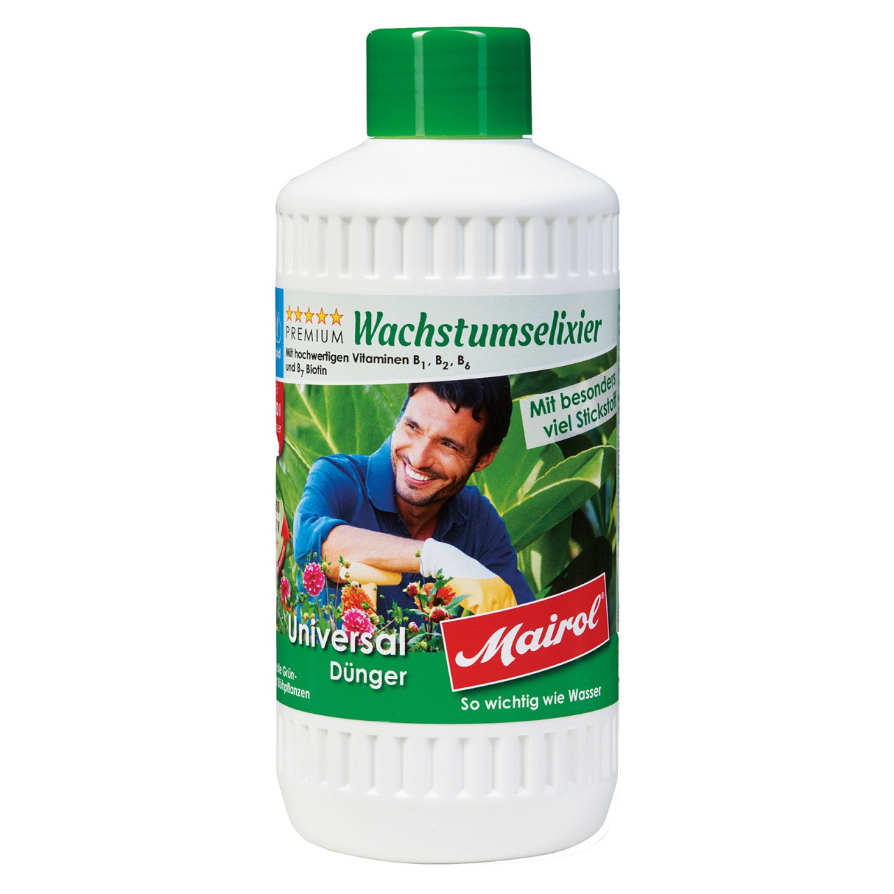 - Mairol Wachstumselixier ist ein hochwertiger Flüssigdünger, der für Zimmer-, Balkon-, Terrassen- und Gartenpflanzen geeignet ist.