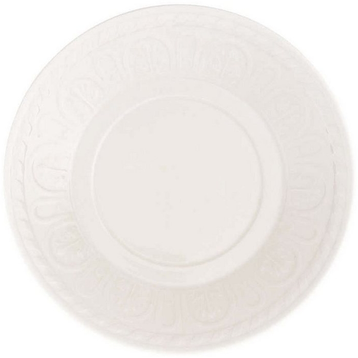 Die Villeroy & Boch Cellini Frühstücks- / Suppenuntertasse mit einem Durchmesser von 18 cm begeistert mit filigranen Relief-Verzierungen auf weichen Formen in Weiß. Diese Untertasse ist eine Hommage an die Architektur der Renaissance und verleiht Ihrer Tafel klassische Eleganz. Genießen Sie Ihr warmes Croissant zum frisch aufgebrühten Frühstückskaffee auf dieser großen Untertasse. Das hochwertige Premium Porzellan ist spülmaschinenfest und mikrowellensicher. **Highlights** - Filigrane Relief-Verzierungen auf weichen Formen - Hommage an die Architektur der Renaissance - Klassische Eleganz für Ihre Tafel - Große Untertasse für ein warmes Croissant - Spülmaschinenfest und mikrowellensicher **Produkteigenschaften** - Durchmesser: ca. 18 cm - Material: Premium Porcelain (Porzellan) - Spülmaschinenfest - Mikrowellensicher **Lieferumfang** - 1 Untertasse