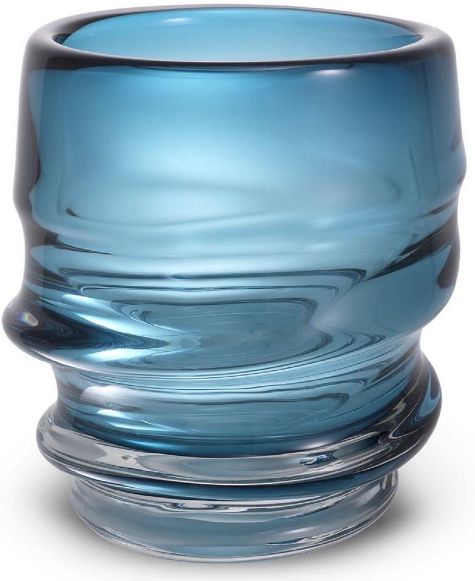 in VasenCasa Padrino Luxus Deko Glas Vase Blau Ø 22 x H. 24 cm - Elegante mundgeblasene Blumenvase - Luxus Deko Accessoires