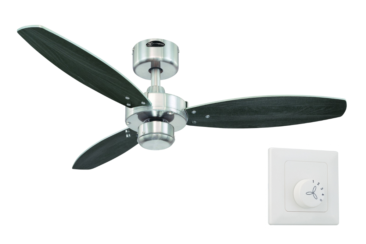 in VentilatorenWestinghouse Deckenventilator ohne Licht Jet 105 cm für Räume bis 12 m² Nickel gebürstet mit Wandschalter