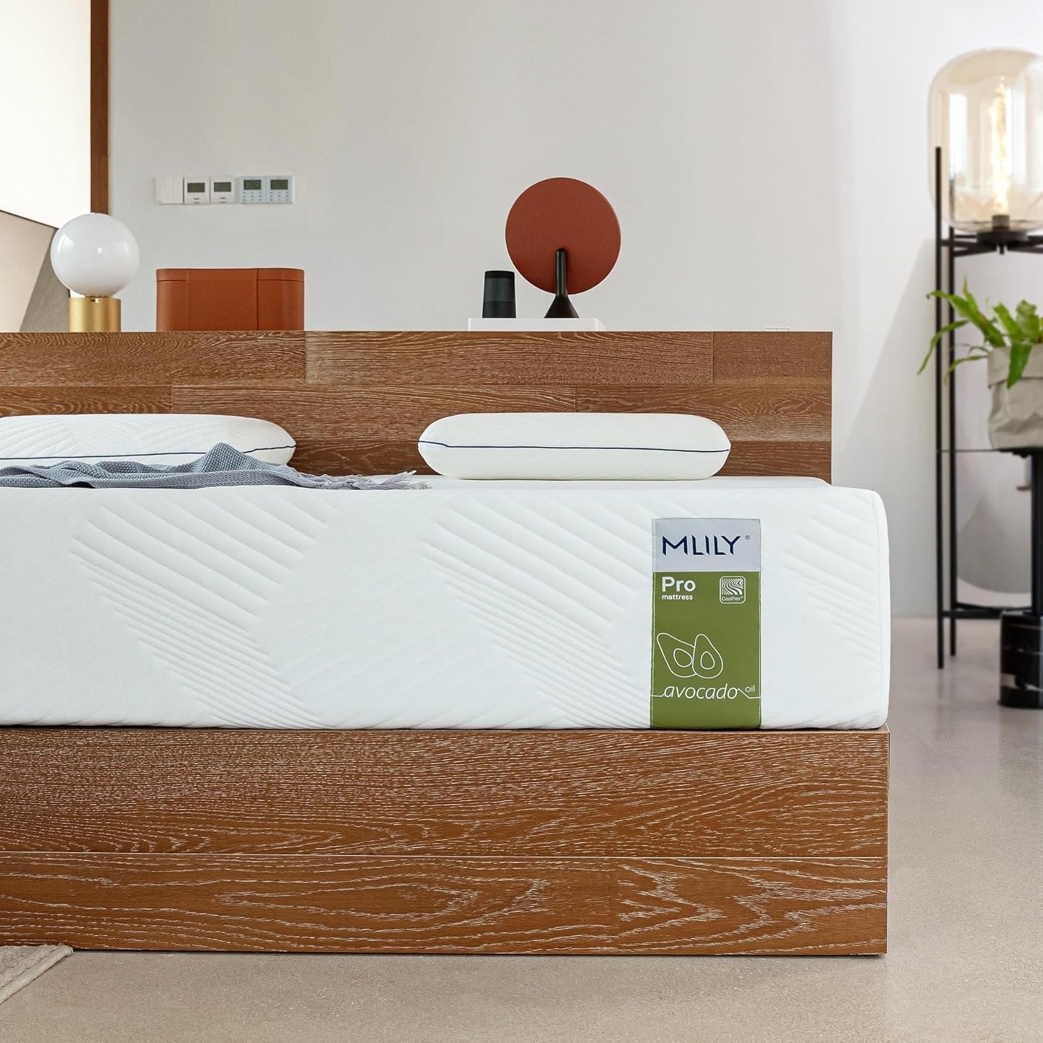 Die MLILY „Pro“-Matratze bietet mit ihrer innovativen COOLFLEX-Technologie und einem einzigartigen 7-Komfortzonen-Design optimalen Schlafkomfort. Mit einer Höhe von 22 cm und den Maßen 200 x 100 x 22 cm passt sie perfekt in Ihr Schlafzimmer. Die Kombination aus drei hochwertigen Schaumstoffschichten sorgt für perfekte Anpassungsfähigkeit, Atmungsaktivität und Stabilität, während der Bezug mit Avocado-Öl-Technologie für eine angenehme Haptik und antimikrobielle Eigenschaften sorgt. **Highlights** - COOLFLEX-Technologie für perfekte Anpassungsfähigkeit und Atmungsaktivität - 7-Komfortzonen-Design zur optimalen Unterstützung des gesamten Körpers - Bezug mit Avocado-Öl-Technologie für eine angenehme Haptik und antimikrobielle Wirkung - Geeignet für alle Körper- und Schlaftypen - Matratzenhöhe von 22 cm für erleichtertes Hineinlegen und Aufstehen **Produkteigenschaften** - Maße (LxBxH): 200 x 100 x 22 cm - 3 Schaumstoffschichten: COOLFLEX®, AIRCELL®, RESPONSIVE SUPPORT™ - Unterstützt Kopf, Nacken, Oberkörper, Hüften, Oberschenkel, Füße und Waden - Verhindert Druckstellen unabhängig von der Schlafposition - Hohe Stabilität und lange Haltbarkeit der Matratze