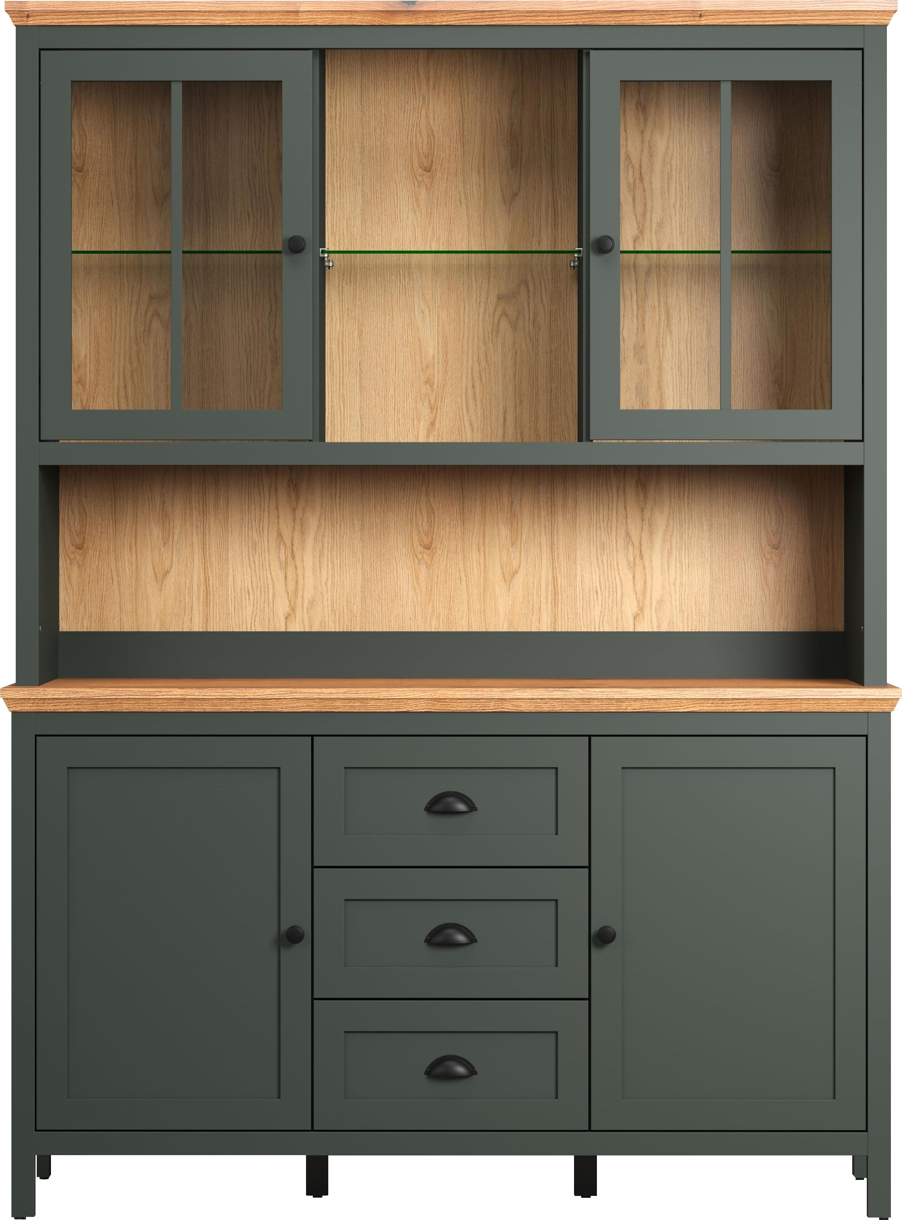 in VitrinenschränkeTrendteam 'Stanton' Sideboard mit AufsatzTannengrün Dekor/ Evoke Eiche Nachbildung, B/H/T: 146 / 198 / 45 cm