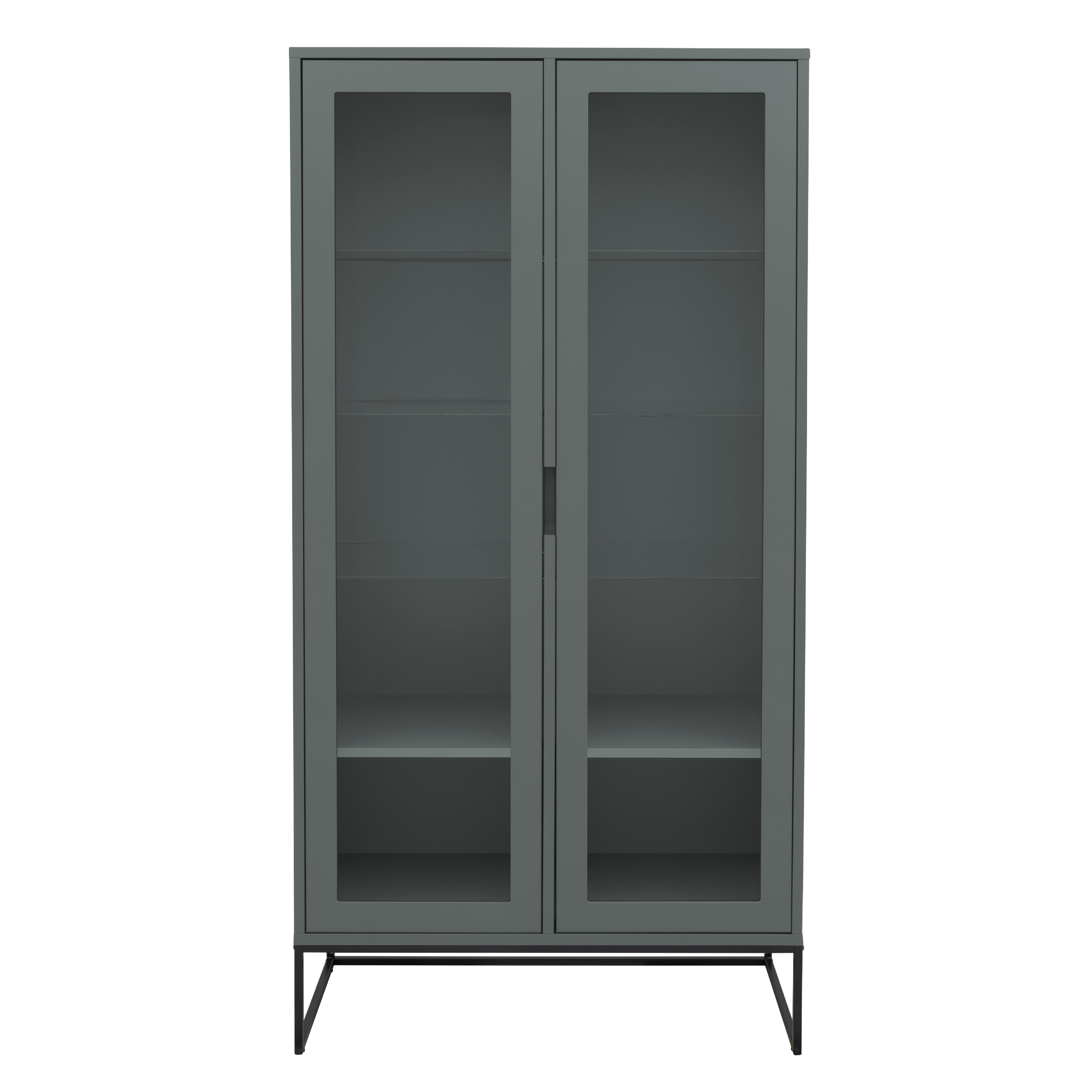 Die Vitrine Cubic in Grün überzeugt durch ihr klares, minimalistisches Design und funktionale Eigenschaften. Der matt-lackierte Korpus mit eingearbeiteten Griffmulden und elegante Metallbeine sorgen für Symmetrie und einen harmonischen Look. Im Innenraum bieten die Ablageflächen aus Glas und MDF viel Stauraum. **Highlights** - Klares und minimalistisches Design - Matt-lackierter Korpus mit eingearbeiteten Griffmulden - Elegante Metallbeine für Symmetrie - Viel Stauraum mit Glas- und MDF-Ablageflächen - Harmonischer Look durch die Kombination der Materialien **Produkteigenschaften** - Material Korpus: MDF matt-lackiert - Material Tür: Glas, MDF matt-lackiert - Material Gestell: Metall matt-lackiert - Ablagefächer: 6 x Glas, 2 x MDF matt-lackiert - Abmessungen: - Höhe: 178 cm - Breite: 90 cm - Tiefe: 43 cm **Lieferumfang** - 1 Vitrine demontiert