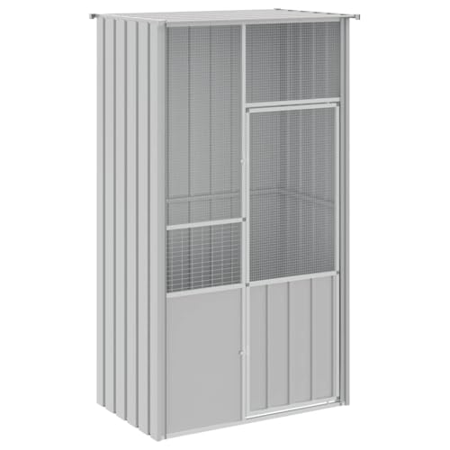 in Vogelkäfige & VogelvolierenvidaXL VogelvoliereVogelkäfig mit abschließbarer Flügeltür, verzinkter Stahl, grau, für Papageien und Wellensittiche