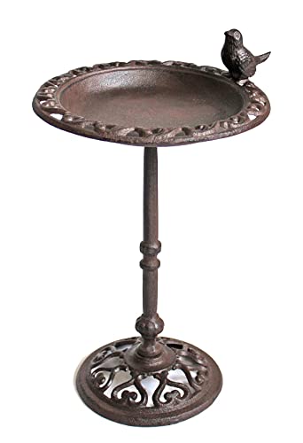 in VogeltränkenSpetebo Wassertränke Vogel antik braun aus Gusseisen - 39 cm - Vogelbad mit Standfuß - Wasser Bad Tränke Garten Deko