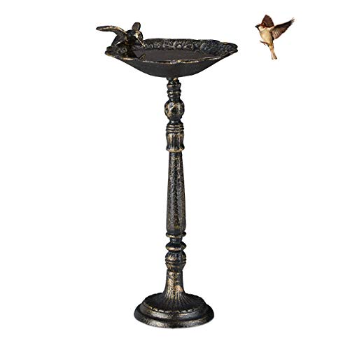 Relaxdays Vogeltränke GusseisenGartendeko antiker Stil, Vogelfutterstelle für Wildvögel, stehend, 40 cm hoch, bronze