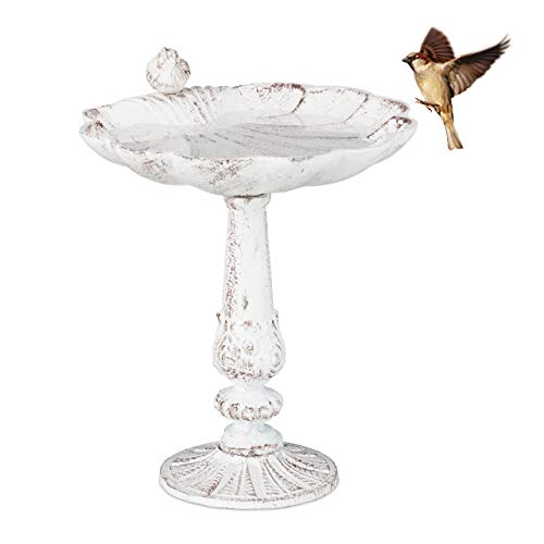 in VogeltränkenRelaxdays Vogeltränke GusseisenGartendeko antikes Design, Vogelfutterstelle stehend, Wasserschale für Wildvögel, weiß