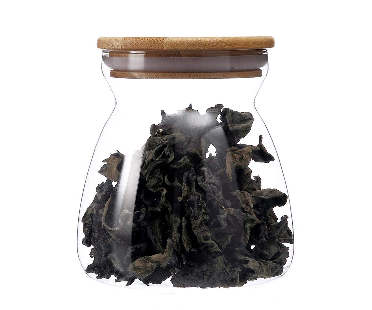 Cupwind Glas-Vorratsdose mit luftdichter Versiegelung Holz-Bambus-Deckel - Klarglas Lebensmittel-Vorratsdose zum Servieren von TeeKaffee, Gewürzen Z-650ml farblos