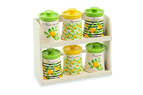 in VorratsdosenGalileo Casa Sorrento Set Vorratsdosen Gewürzdosen mit StänderKeramik, Gelb/Grün, 7 Stück