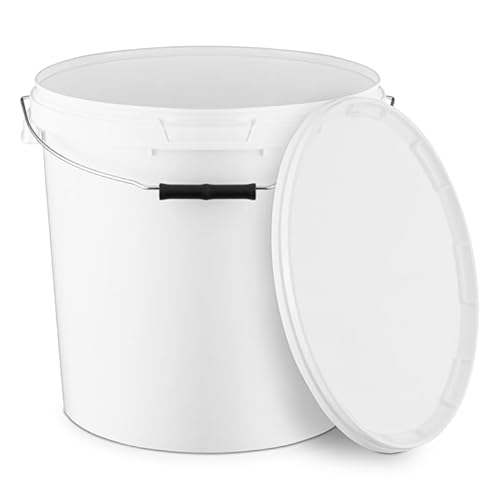 in VorratsdosenBenBow Eimer mit Deckel 20l weiß 5X 20 Liter - lebensmittelechtstabil, luftdicht, auslaufsicher - Vorratsbehälter für Aufbewahrung aus Kunststoff, mit Metall-Henkel - leer