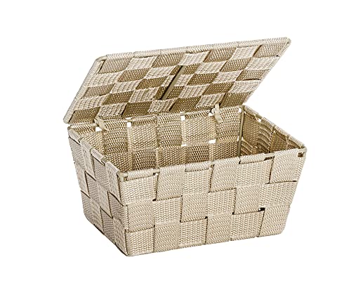 WENKO Aufbewahrungskorb mit Deckel Adria Beige - BadkorbPolypropylen, 19 x 10 x 14 cm, Beige