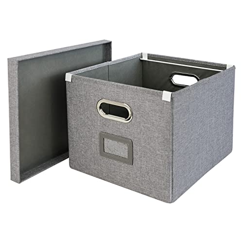 HMF Aufbewahrungsbox mit Deckel für DIN A4 Hängeregister | passend für Kallax | 33 x 37,5 x 28 cm | Grau