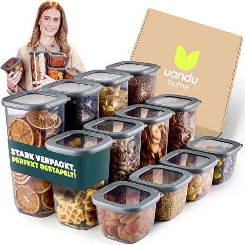 uandu Vorratsdosen mit Deckel Luftdicht - 12er Vorratsbehälter Set | BPA Frei | Transparente Aufbewahrungsdosen für trockene Lebensmittel