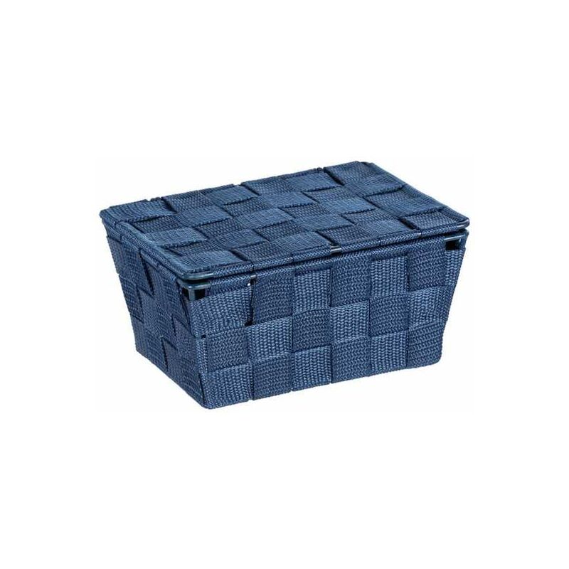 Wenko Aufbewahrungskorb Korb Aufbewahrungsbox Körbchen mit Deckel Adria Dunkelblau