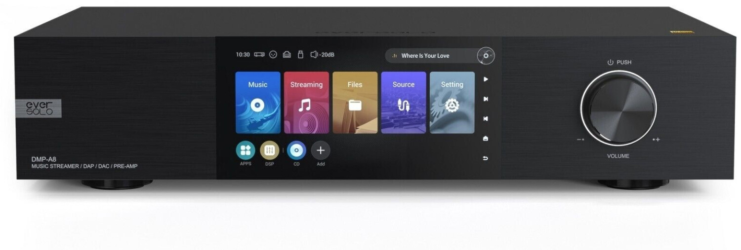 - Der Eversolo DMP-A8 ist ein All-in-one High-End Streamer, DAC und Vorverstärker mit hochwertigen Ausstattungsmerkmalen.