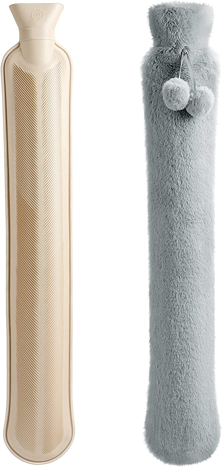 ❤️ Sicher und Langlebig -- Die Wärmflaschen wurde Premium Naturkautschuk verwendet, CE-konform, BS1970:2012-sicherheitsgeprüft und -überwacht, Schadstoff-geprüft. Das Stoppermaterial ist PVC. Ein weiches, warmes Geschenk für Kinder, Erwachsene und Eltern im kalten Winter Tag und Nacht. ❤️ Hervorragende Wärme -- Das lange Wärmekissen versorgt Nacken, Schultern, Rücken und Bauch mit einer angenehmen langanhaltenden Wärme. Besonders wohltuend bei Verspannungen oder Krämpfen. Der graue Wärmflaschenbezug ist samtig weich auf der Haut und der perfekte Kuschelersatz. ❤️ Weicher Bezug für Gemütliche Abende -- Die Wärmflasche mit weichem Bezug eignet sich für gemütliche Abende zu zweit oder alleine bei einem Glas Wein auf der Couch. Vor allem an kalten Wintertagen sorgt die Wärmflasche für Wohlbefinden und Komfort. ❤️ Großes Fassungsvermögen -- Die extra lange Wärmflasche mit Bezug versorgt den ganzen Körper mit kuscheliger Wärme. Die Wärmflasche mit den Maßen 73 cm x 13 cm hat ein Fassungsvermögen von 2 Litern. die Luxuswärmflasche ist vielfältig einsetzbar und sorgt für wohlige und kuschelige Wärme am ganzen Körper. Hinweis: Verwenden Sie zu Ihrer Sicherheit kein kochendes Wasser. Füllen Sie nicht zu viel Wasser, sondern nur 2/3. ❤️ PERFEKTE GESCHENKWAHL: Geeignet für Weihnachten, Muttertag, Vatertag, Geburtstag usw. Ob Sie unterwegs, zu Hause, im Büro oder im Freien sind, es ist sehr praktisch und Es ist ein ideales Geschenk für für Freunde, Familie, Kinder, Söhne und Töchter.