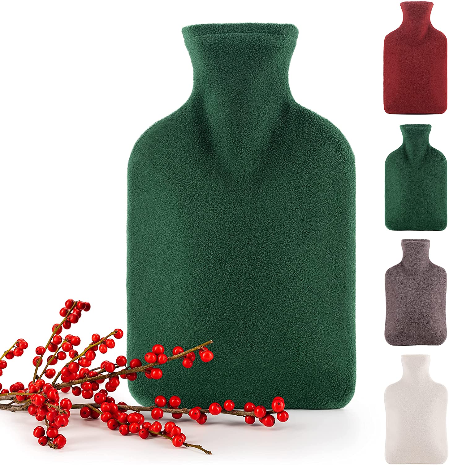 in WärmflaschenBlumtal Wärmflasche mit weichem Bezug - 1,8L WärmeflascheBettflasche, Wärmflasche flauschig (Grün)