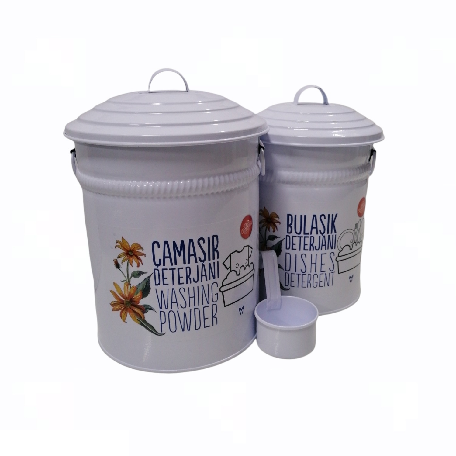 Aufbewahrungsbehälter für Waschpulver Geschirrspülpulver Tabs Metall 3-Teilig Weiss