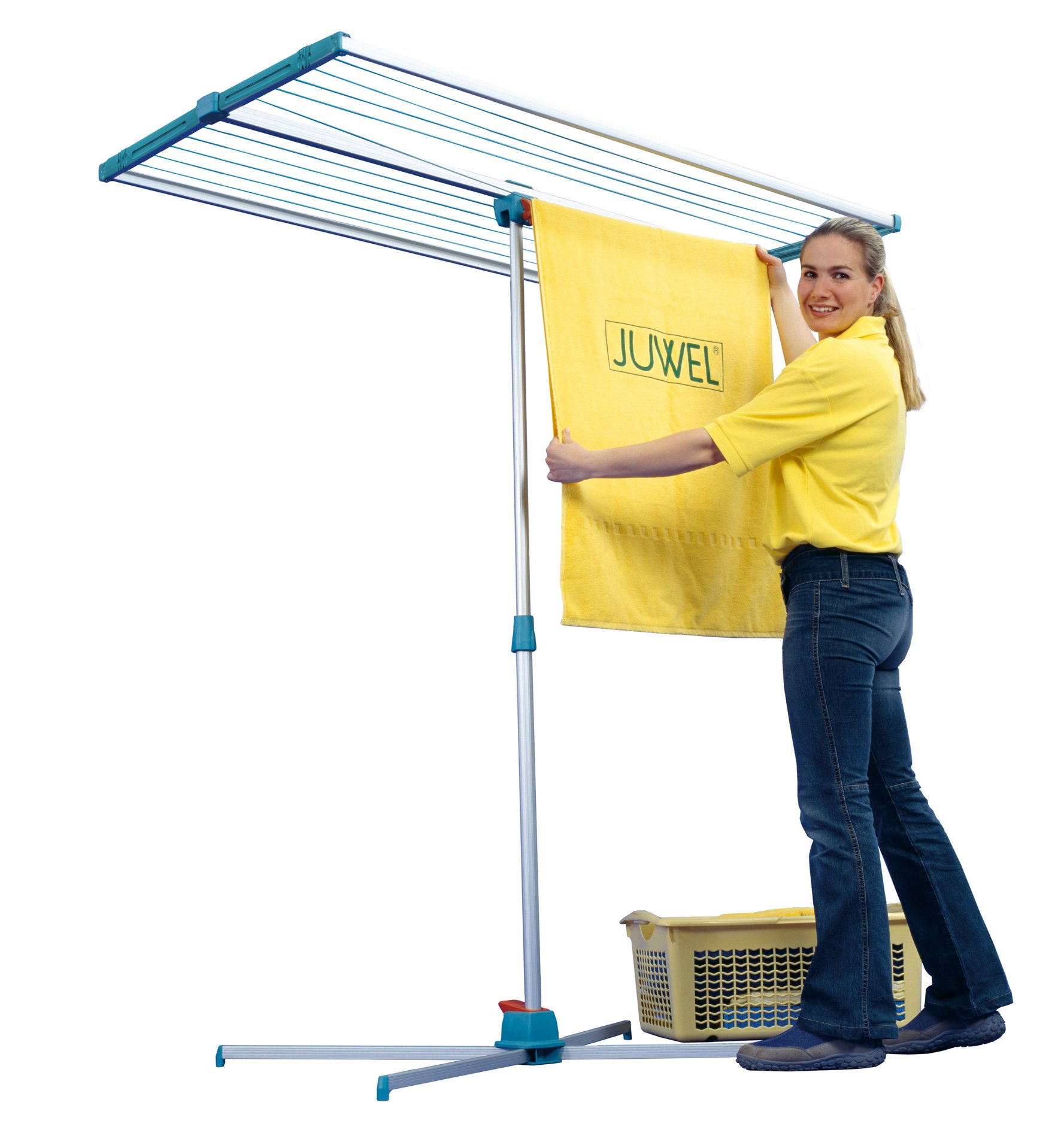 - Der Juwel Wäschetrockner Swing 200 bietet eine Trockenlänge von ca. 18,9 Metern, was bis zu 2 Waschmaschinenfüllungen entspricht.