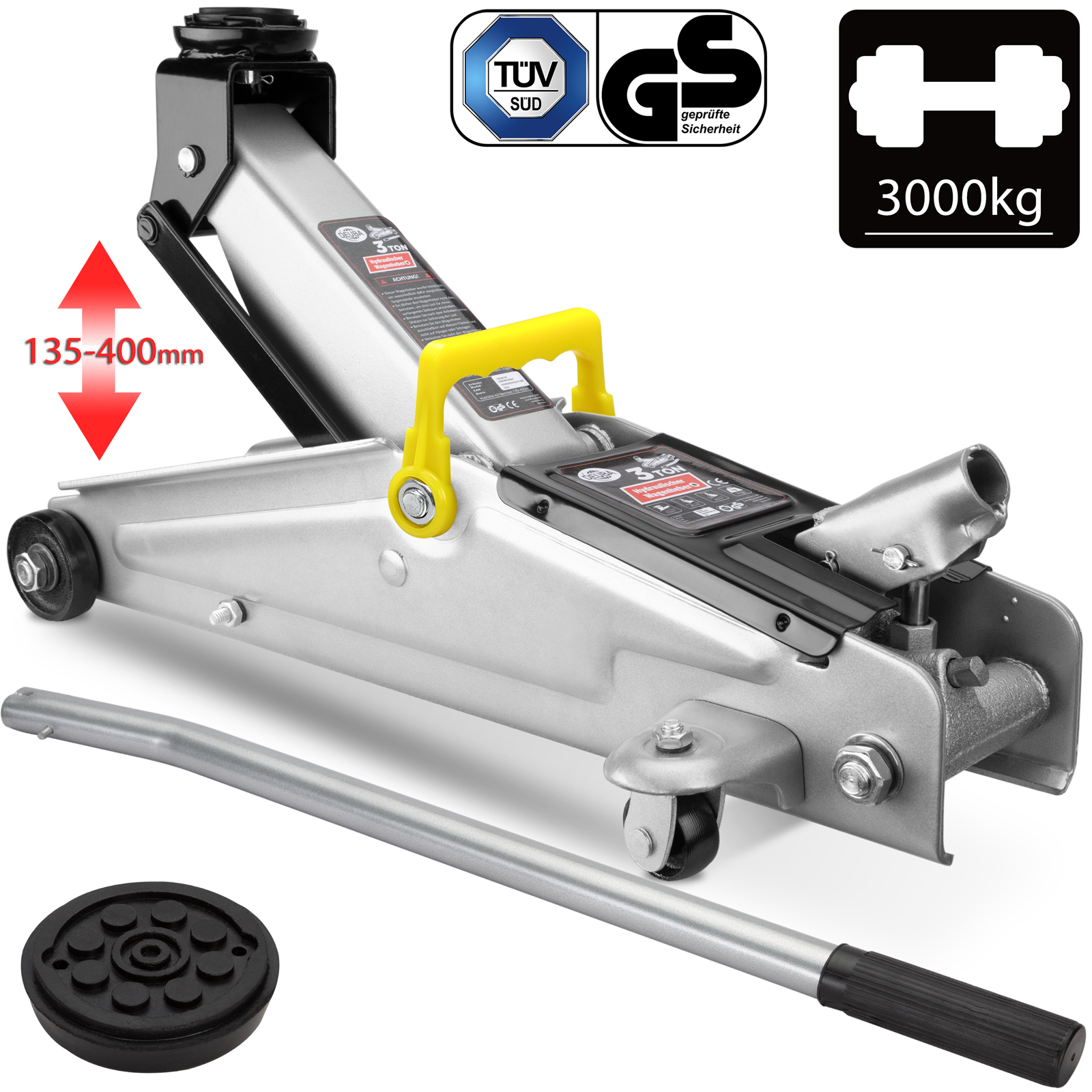 - Der Deuba hydraulische Wagenheber hat eine maximale Hubhöhe von 400 mm und ein Hubgewicht von 3 Tonnen, was ihn ideal für das Heben von Fahrzeugen, SUVs und landwirtschaftlichen Nutzfahrzeugen macht.