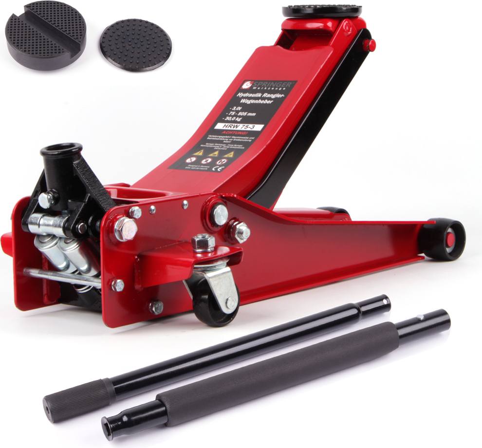 in WagenheberSpringer Werkzeuge 3 T Rangierwagenheber Wagenheber 75-505mm Doppelkolben Hydraulisch 2 AuflagenFlach designed, inkl. zweitem Gummiteller