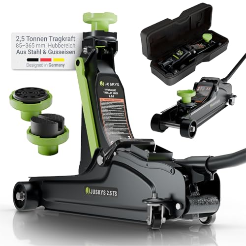 - Der hydraulische Wagenheber von Juskys ist ein praktisches Werkzeug für Heimwerker, das eine Tragkraft von bis zu 2,5 Tonnen bietet