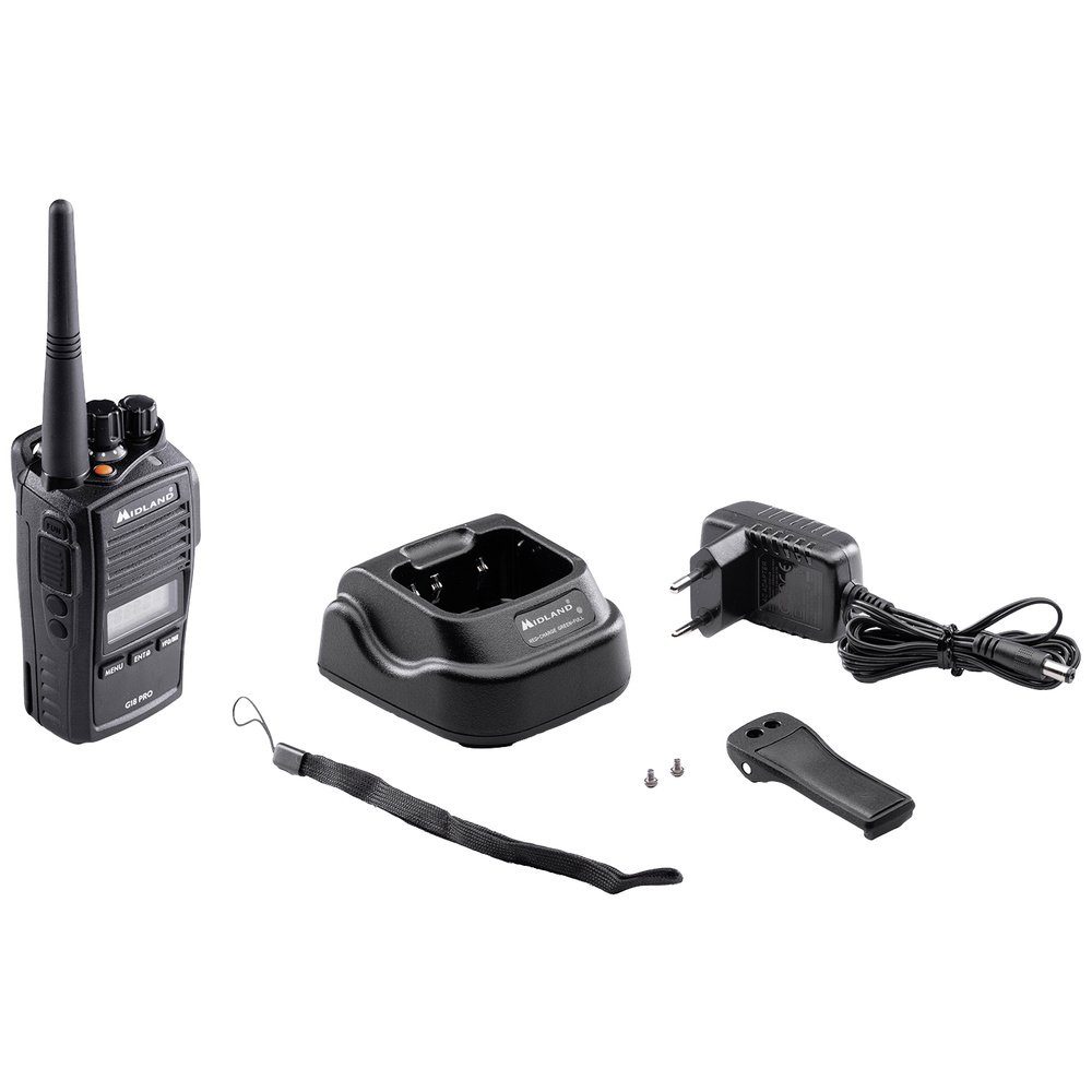 - Das Midland G18 Pro PMR-Funkgerät aus der Kategorie "Walkie-Talkies" bietet 16 Kanäle, 99 Kanalspeicher und eine IP67 Wasserschutzklasse