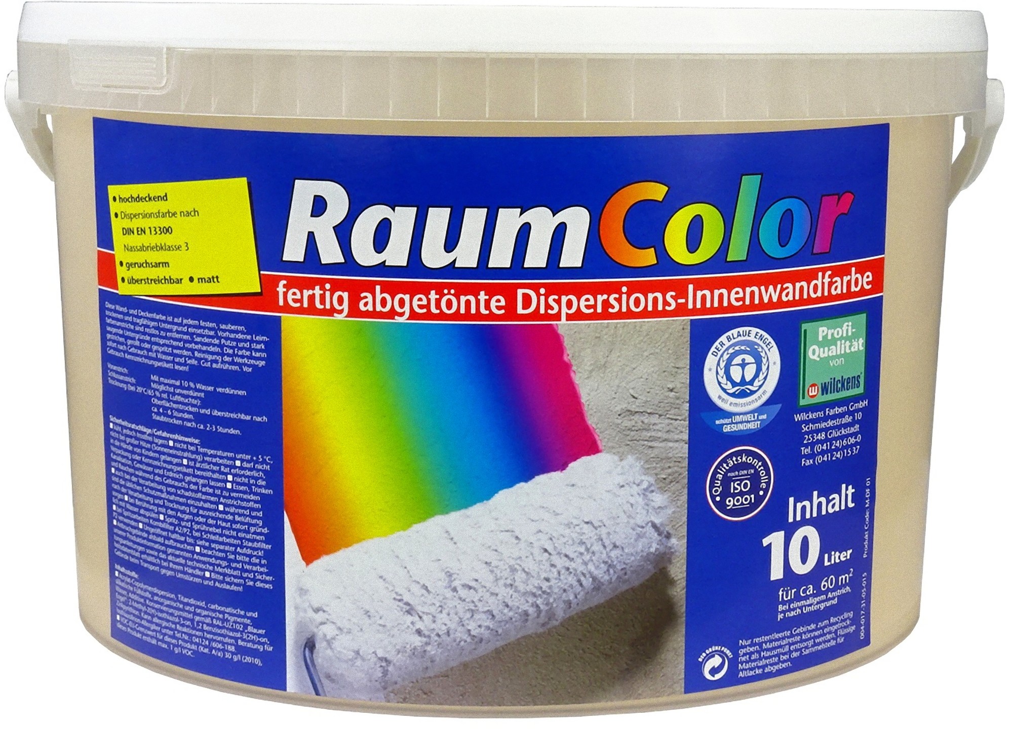 - Wilckens Raumcolor Latte Macchiato ist eine fertig abgetönte Kunststoff-Dispersionsfarbe, die in Handwerkerqualität gut deckt.
