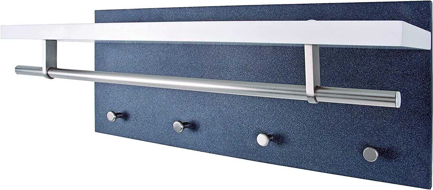 Die HAKU Möbel Wandgarderobe in Granitoptik ist aus Holz gefertigt und hat eine Höhe von 75 cm. Mit einer Breite von 75 cm und einer Tiefe von 30 cm bietet sie ausreichend Platz für Jacken, Mäntel und Taschen. Die Garderobe verfügt über 4 Haken und eine großzügige Stange für Kleiderbügel. Das moderne Design in Kombination mit dem glänzenden Holzpaneel und den Edelstahlstangen verleiht jedem Raum eine elegante Atmosphäre. Die Wandgarderobe ist leicht zu montieren und wiegt ca. 7 kg. Mit ihrer minimalistischen Einfachheit passt sie perfekt zu jedem Einrichtungsstil. Ob im Flur oder im Ankleidezimmer, diese funktionale und stilvolle Wandgarderobe ist ein Blickfang und sorgt dafür, dass die Jacken Ihrer Freunde und Liebsten immer ordentlich aufbewahrt werden. **Highlights** - Moderne Wandgarderobe in Granitoptik - Aus Holz mit glänzendem Holzpaneel und Edelstahlstangen - 4 Haken und großzügige Stange für Kleiderbügel - Leicht zu montieren und mit einer Höhe von 75 cm - Perfekte Balance zwischen modernem Design und Funktionalität **Produkteigenschaften** - Material: Holz - Farbe: Granitoptik - Höhe: 75 cm - Breite: 75 cm - Tiefe: 30 cm - Gewicht: ca. 7 kg **Lieferumfang** - 1x HAKU Möbel Wandgarderobe in Granitoptik