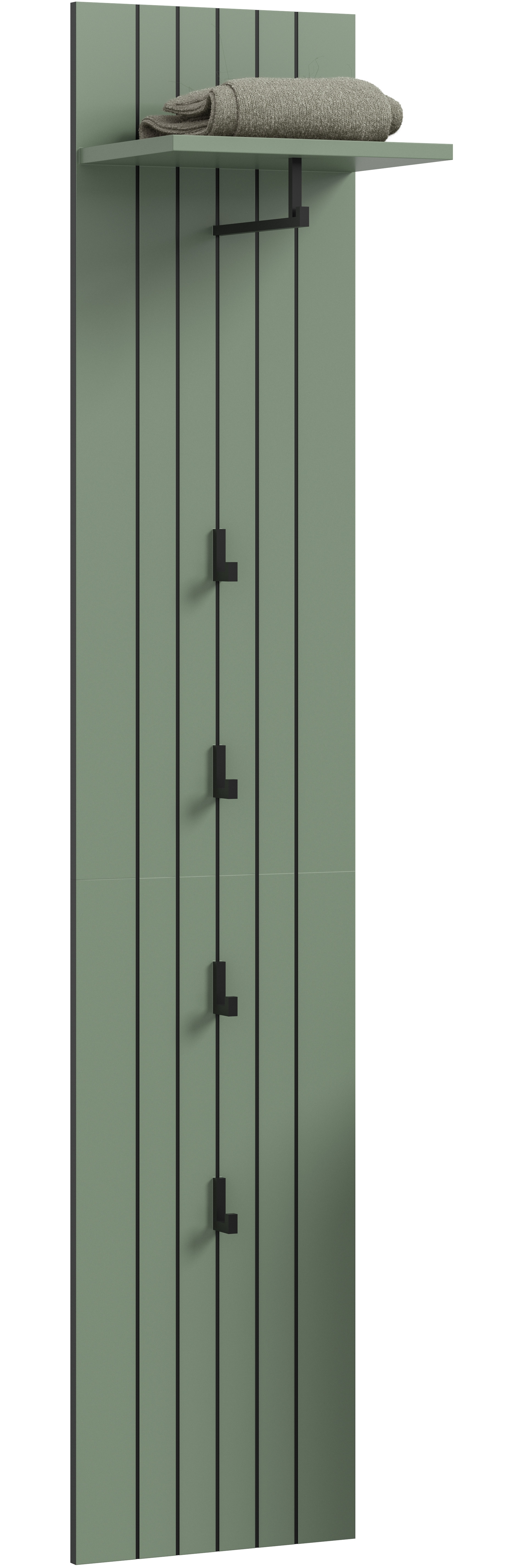 Garderobenpaneel (B/H/T: 31x160x27 cm) in Smoke Green Nachbildung/4 Haken, 1 Ablageboden, 1 Kleiderstange