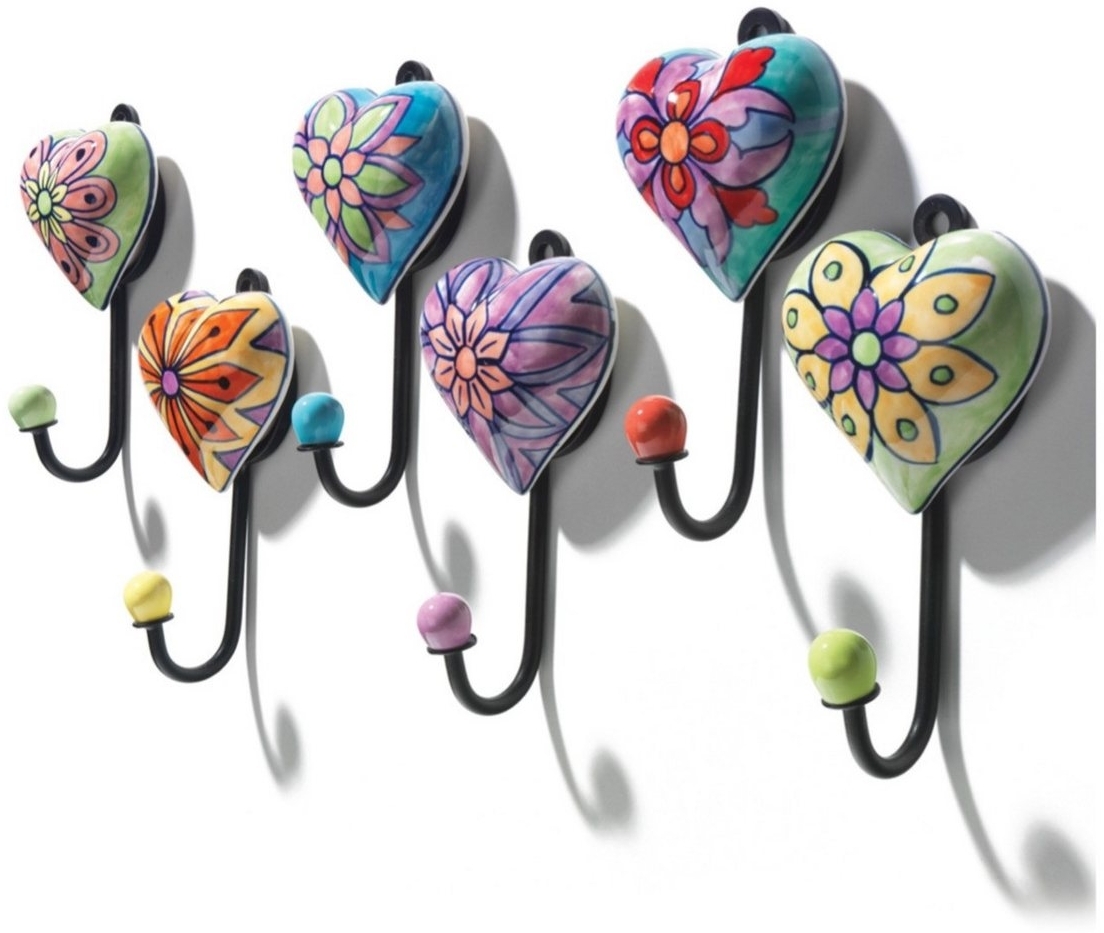 in WandhakenLK Trend & Style Garderobenhalter Dekorative Wandhaken SetHerz-Design mit Blumenmuster (6 St), Keramik und Metall, lackierte Oberfläche