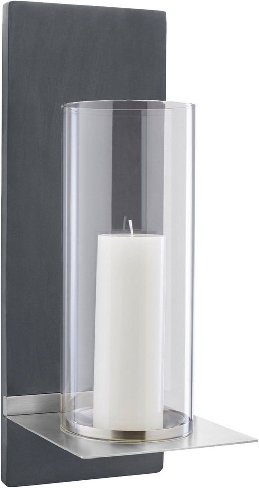Ob im Wohnbereich oder draußen an der Hauswand: Mit dem Wandleuchter FINCA lässt sich alles ins rechte Licht rücken. Mattiertes Edelstahl, Klarglas und anthrazitfarbener Polystone verschmelzen zu einer Einheit mit Leuchtkraft. Erhältlich in zwei verschiedenen Größen inklusive Kerze und Montagekit. Länge: 21 cm Breite: 19 cm Höhe: 52 cm Material: Edelstahl matt, Polystone, Glas klar Hersteller-Artikelnummer: 65423