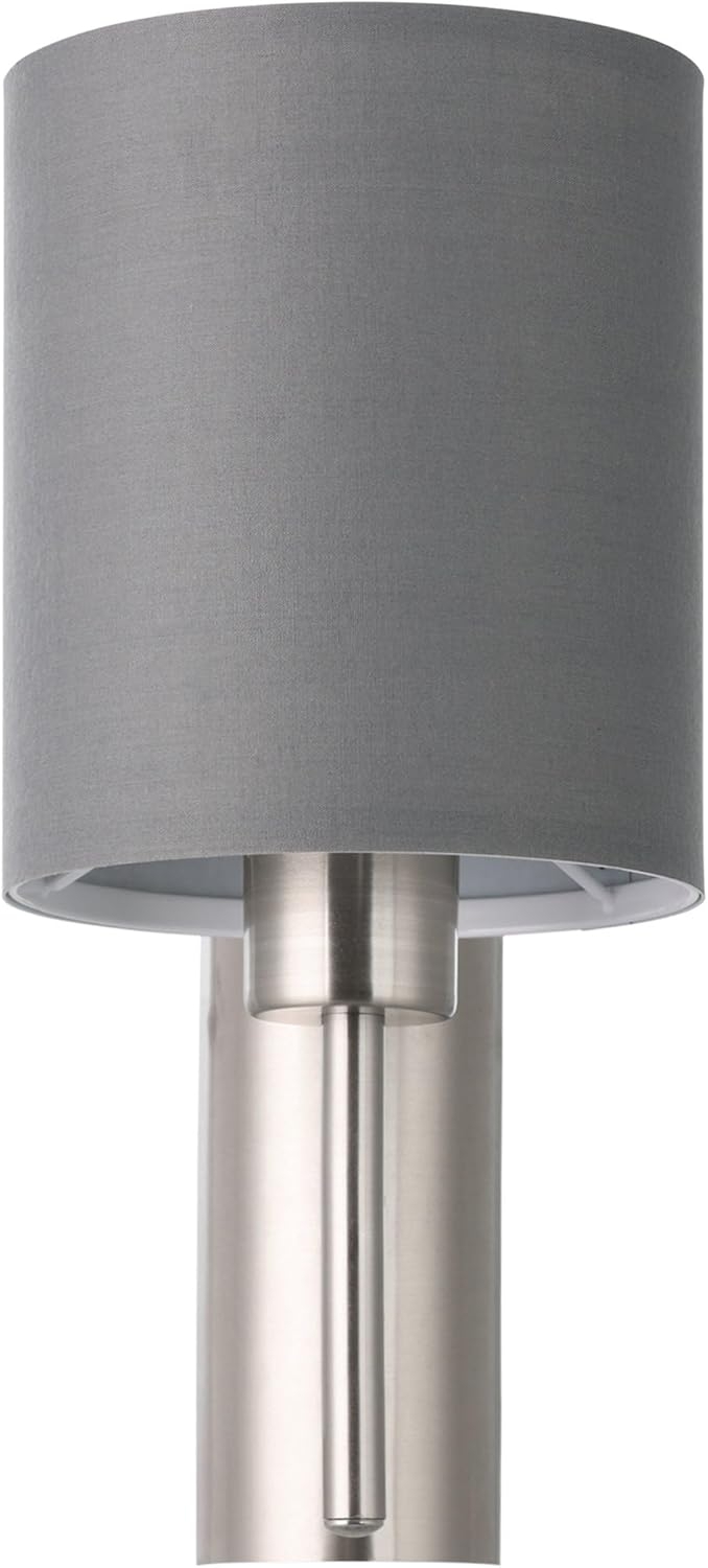 Die Eglo 94926 Wandleuchte Pasteri vereint modernes Design mit Funktionalität. Mit einem eleganten grauen Textil-Lampenschirm und einem nickel-matten Stahlkörper fügt sie sich harmonisch in jedes Wohnambiente ein. Der praktische Wippschalter ermöglicht ein bequemes Ein- und Ausschalten. Diese Leuchte ist ideal für Schlafzimmer, Wohnzimmer oder Flur und sorgt für eine gemütliche Atmosphäre. **Highlights** - Wippschalter für bequemes Ein- und Ausschalten - Ideal für Schlafzimmer und Wohnzimmer - Schlichtes Design - Spannender Material-Mix aus Metall und Textil - Dimmbar je nach verwendetem Leuchtmittel **Produkteigenschaften** - Maße (L x H): 14,5 x 30,5 cm - Ausladung: 19,5 cm - Gewicht: 0,638 kg - Leuchtmitteltyp: E27 - Max. Watt Leuchtmittel: 1 x 60 W - Leuchtmittel enthalten: EXKLUSIV - Schutzart: IP20 - Gehäusematerial: Stahl - Gehäusefarbe: nickel-matt - Schirmmaterial: Textil - Schirmfarbe: grau **Lieferumfang** - Wandleuchte Pasteri - Leuchtmittel nicht im Lieferumfang enthalten