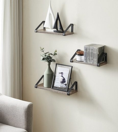 | Name | Vasagle Wandregal, 3-tlg, Holzspanplatte / Stahl grau, Länge 30/35/40 cm |